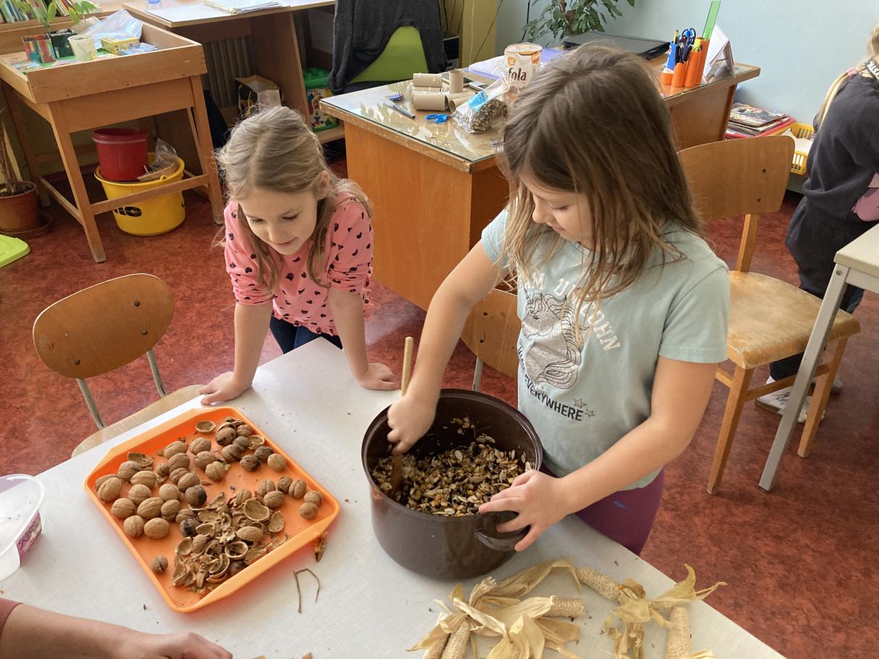výroba a následné zavěšení krmítek v parku