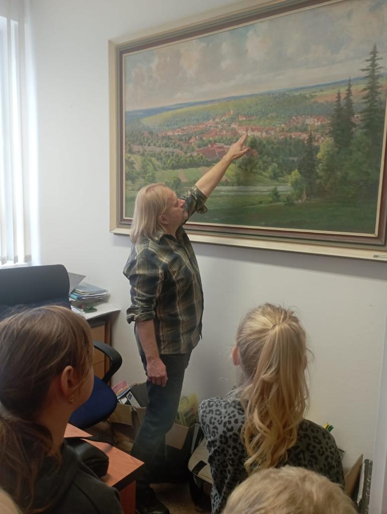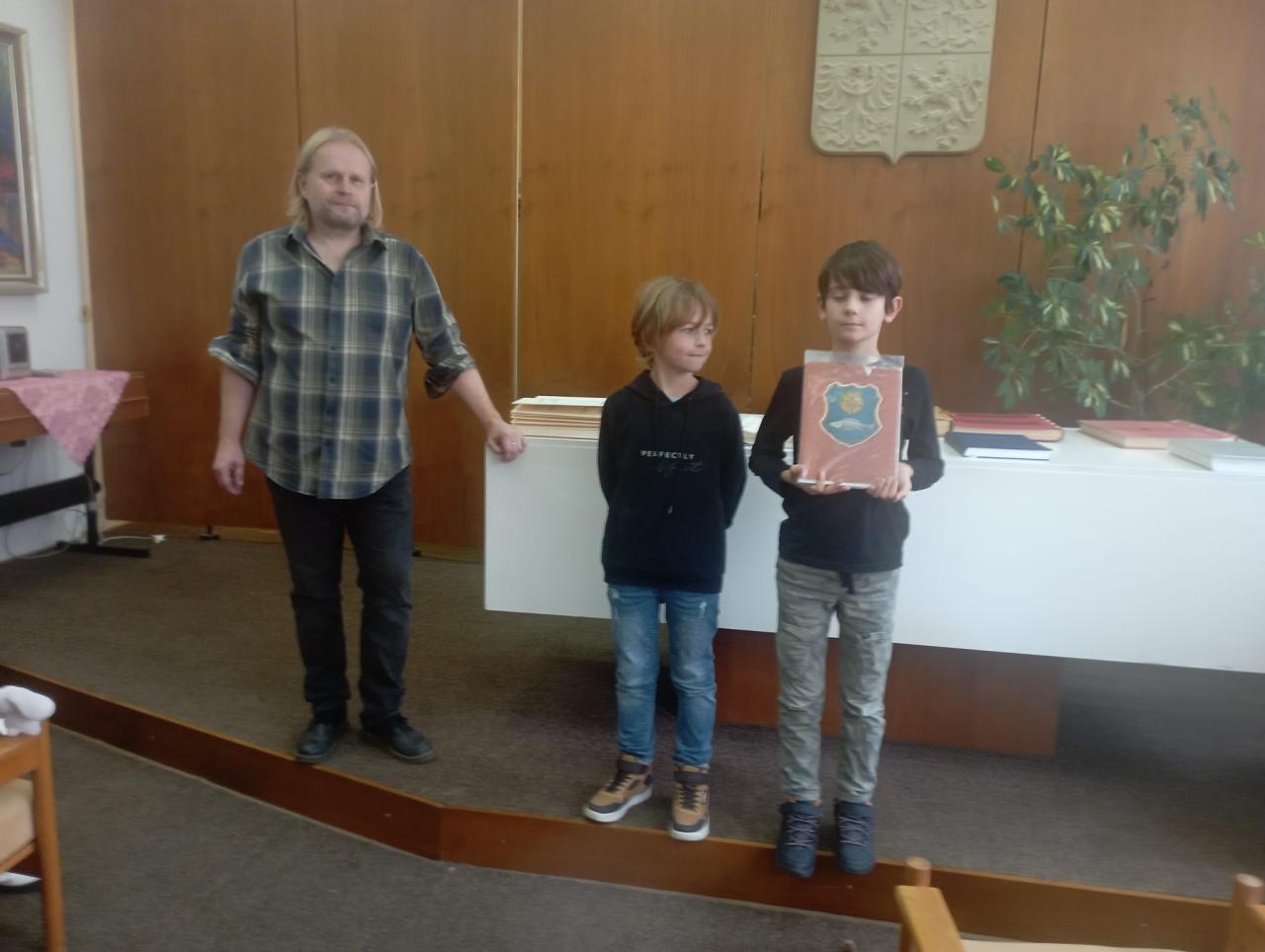 Po příchodu děti přivítal pan starosta a paní Pešková, která dětem ukázala matriční knihy. Pan starosta dětem vyprávěl o historii vzniku obce. V průběhu vyprávění měli žáci možnost pokládat panu starostovi otázky, na které ochotně odpovídal a nakonec žáky provedl úřadem.