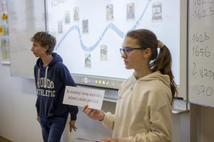 Dne 14.11. proběhl v 7. třídě projektový den Plus Mínus s Amosem. Žáci se hravou a interaktivní formou dozvěděli o Amosově životě a také měli možnost se zamyslet nad jeho životní filozofií."