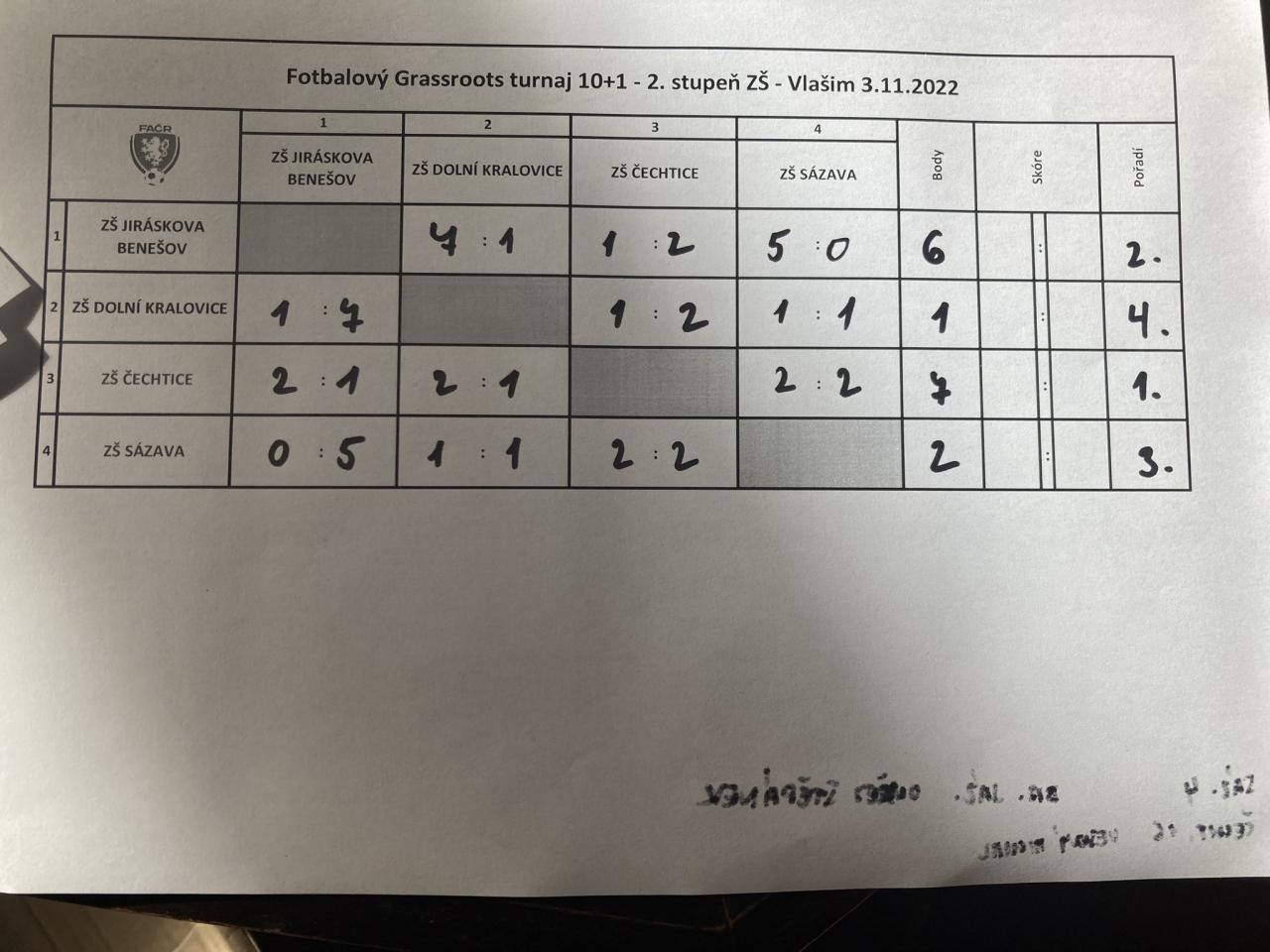 Dne 3. 11. 2022 se vybraní žáci 2. stupně zúčastnili fotbalového turnaje Grassroots, který se konal ve vlašimském areálu Na Lukách.