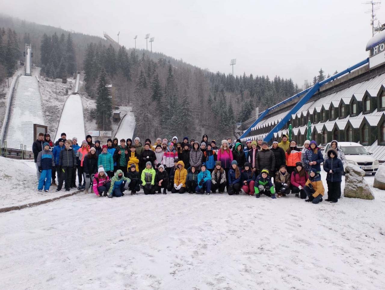 Naše 7.,8. a 9. třída posílá pozdrav z lyžařského kurzu v Harrachově.