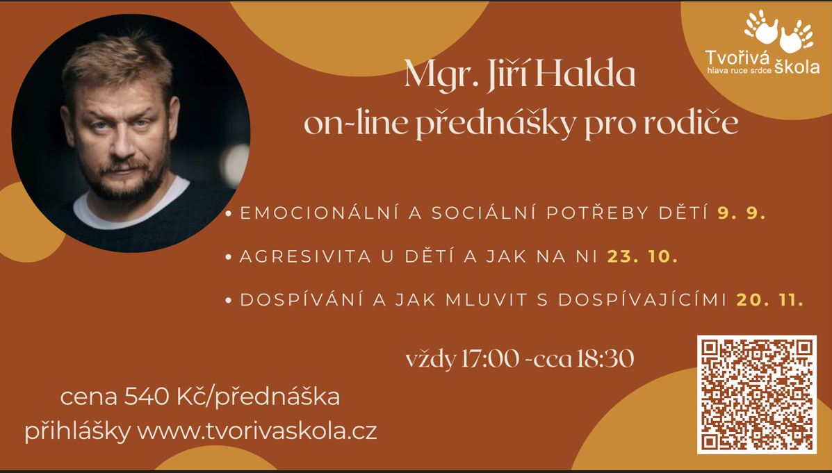 | Mgr. Jiří Halda je speciální pedagog, lektor a rodinný terapeut. Orientuje se na poruchy chování a učení a rodinné vztahy. Rodinu vnímá jako živý organismus, kde má být všem dobře a všichni si mají být jisti svým místem. Je autorem knih Maličkosti na které byste při výchově dětí neměli zapomínat a V každé chvíli jste mi vzorem. Jednotlivé přednášky budou probíhat dle data v čase 17:00 - 18:30. Přednášky se uskuteční v online prostředí Livewebinar. Link zašleme všem přihlášeným účastníkům den před konáním přednášky. Účastnický poplatek: 540 Kč/přednáška Více informací o webinářích Mgr. Jiřího Haldy a podrobnosti najdete ZDE. |