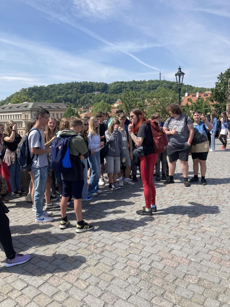 Ve dnech 7. a 14. května se žáci 2. stupně zúčastnili akce Praha hravě v AJ, konkrétně "Rychlovka na Karlově mostě a bojovka na Kampě". Programem nás provázela lektorka, která po celou dobu mluvila anglicky a to také vyžadovala po žácích. Program byl velice interaktivní - žáci se rozdělili do několika skupin a jejich cílem bylo nasbírat co nejvíce mincí a diamantů za správné odpovědi z období Karla IV. Dále jsme se přesunuli na Kampu, kde žáci ve svých skupinách hledali odpovědi. Skupina s největším počtem mincí a diamantů vyhrála.